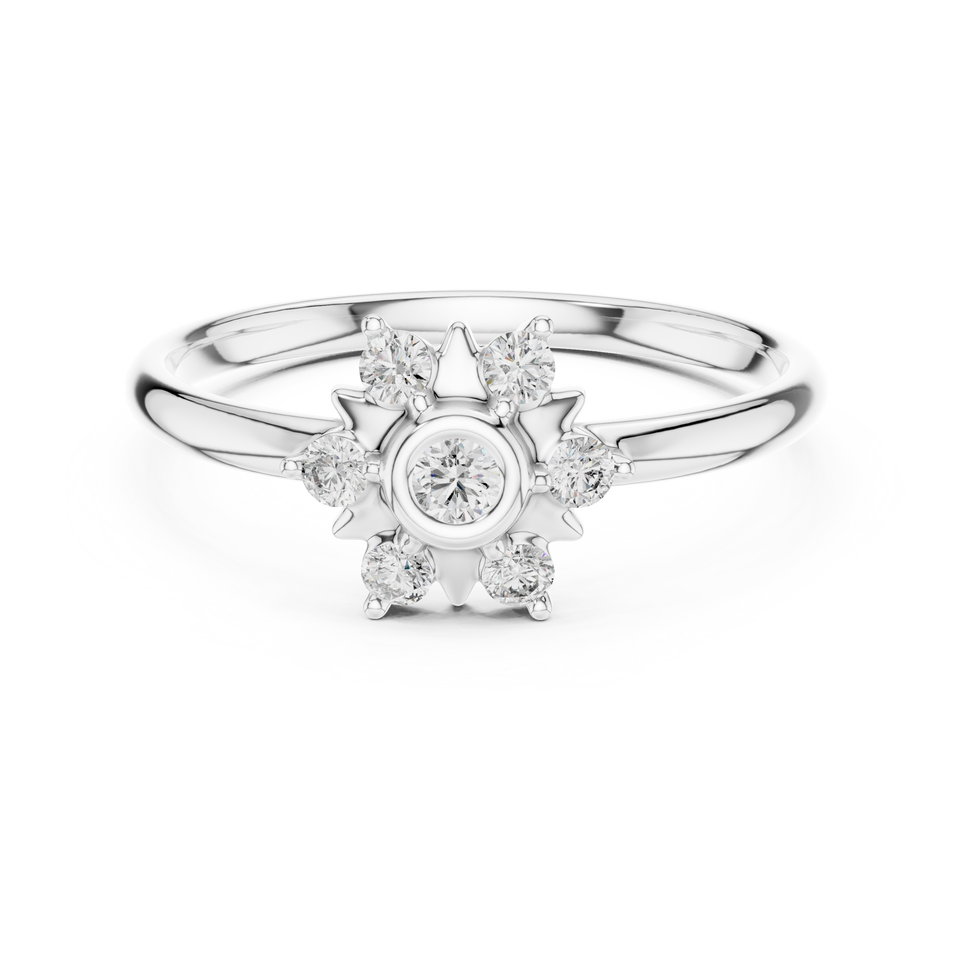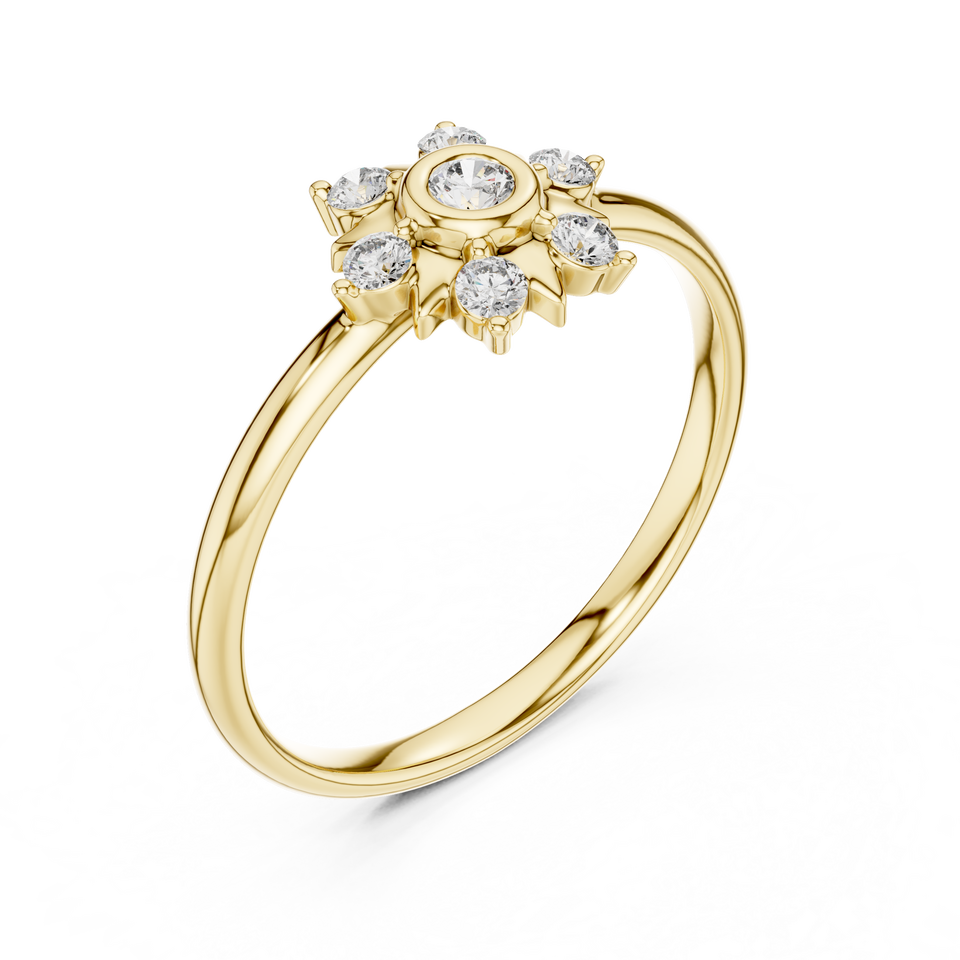 Anillo Elegante con Flor y Diamantes Cultivados en Laboratorio, Corte Redondo, Oro Sólido de 14k, Regalo para el Día de la Mujer, para Mamá