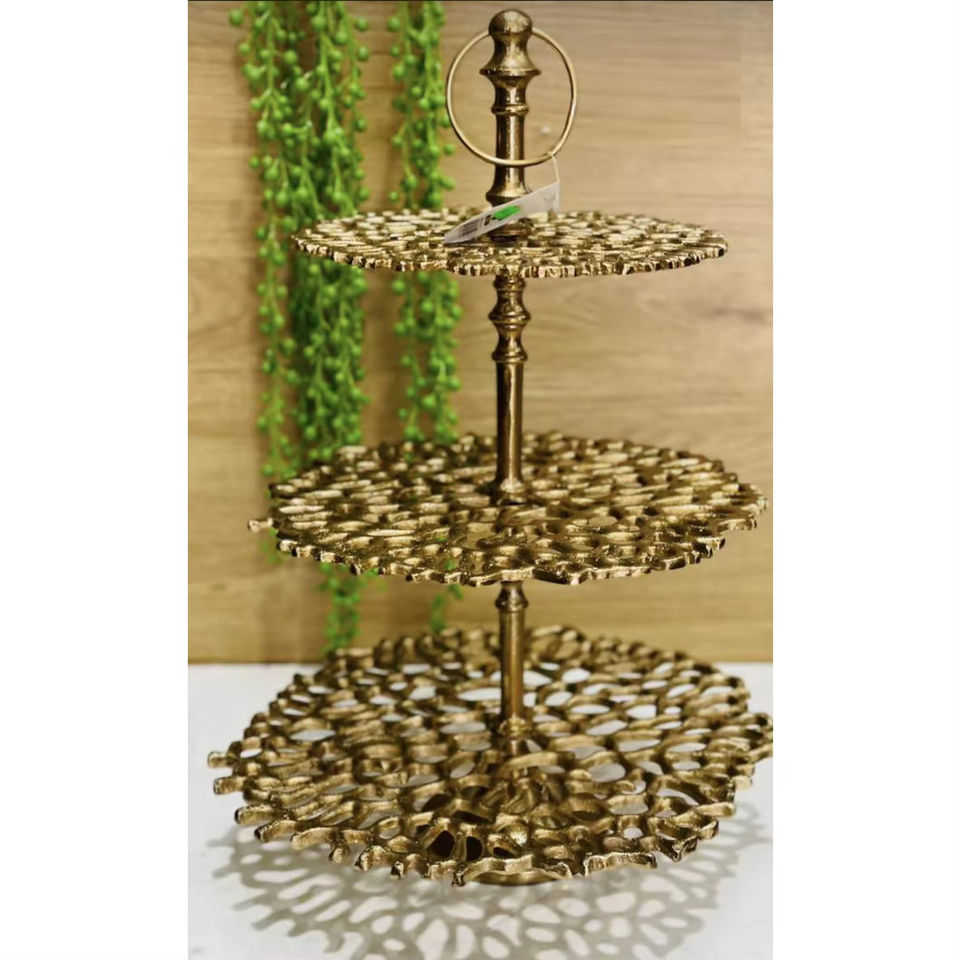 Base Redonda para Pastel con Diseño Floral, Bañada en Oro, de Alta Calidad, con Acabado Martillado, para Fiestas de Cumpleaños, para Servir Cupcakes