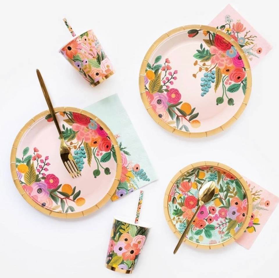 Platos y Vasos de Papel con Diseño Floral, Vajilla Personalizada, Artículos para Fiestas, Juego de Vajilla