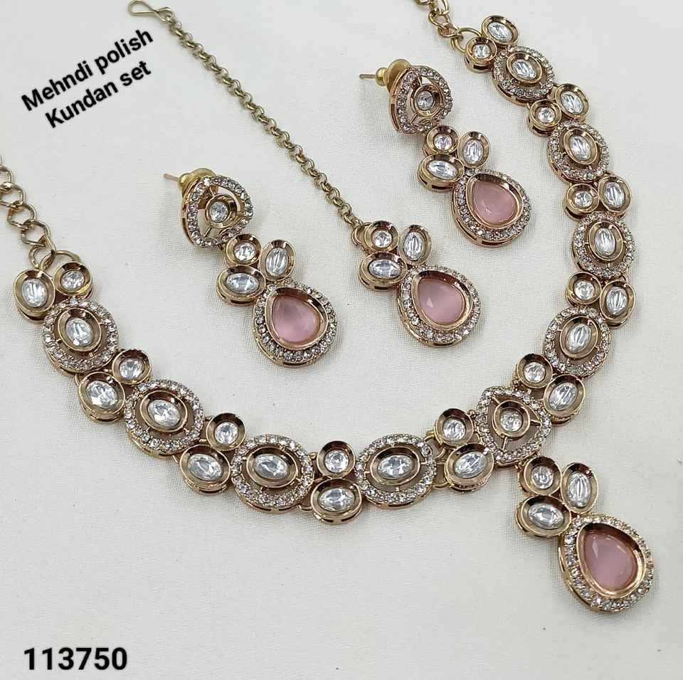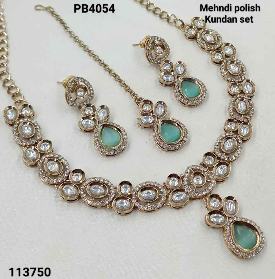 Diseño de flores impresionante hecho a mano Zirconia cúbica moda india gargantilla joyería collar con pendiente y Mangtika conjunto para mujer