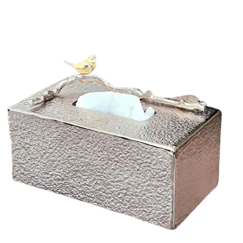 Caja de pañuelos con diseño de flores, caja de pañuelos de Metal de aluminio para baño de lujo moderno con forma Rectangular plateada