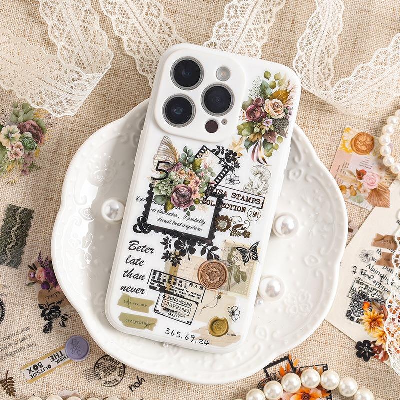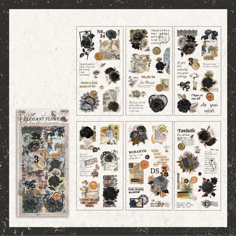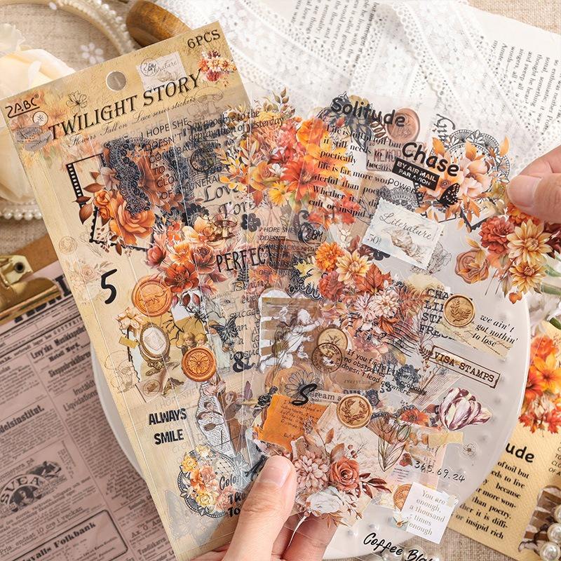 Pegatinas de Papelería PET Impermeables con Diseño de Pétalos de Flores Caídos, Impresión Offset, Diseño Retro de Película Cortada, Decoración Festiva