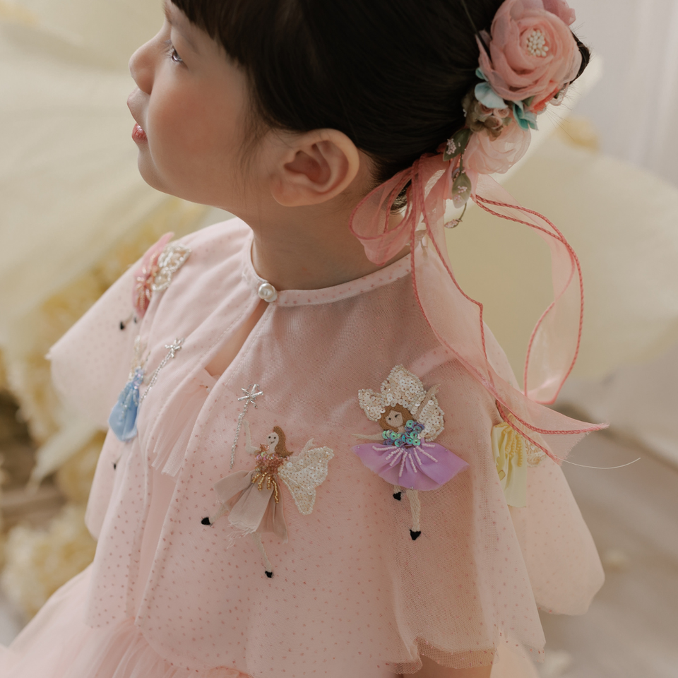 1ª capa: Tul; 2ª: Tafetán, Capa interior: SaténTipo de tela