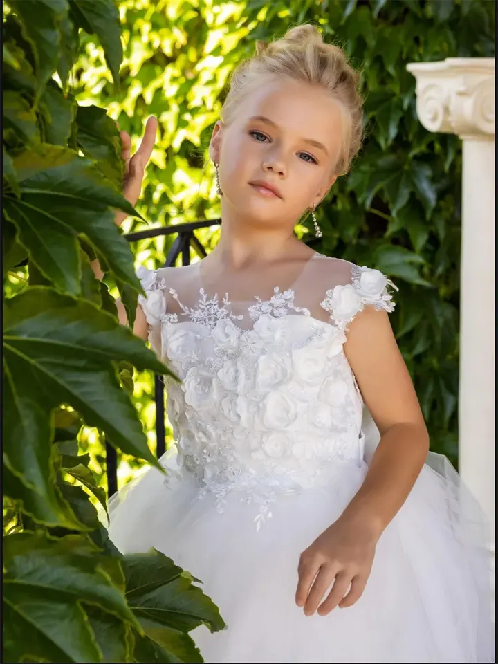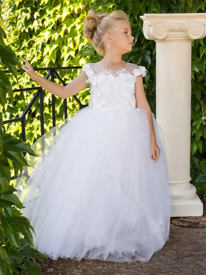 Estilo:SimpleFlower vestido de niña princesa falda Primera comunión vestidos F