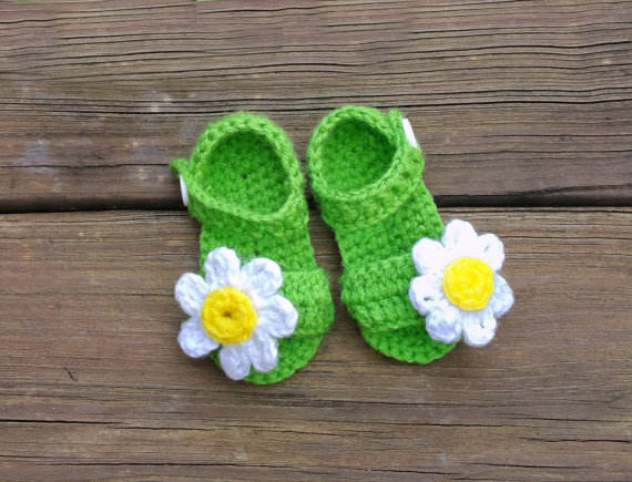 Nombre del producto:Flor Verde Sandalias Crochet Zapatos De Bebé Sandalias De Bebé