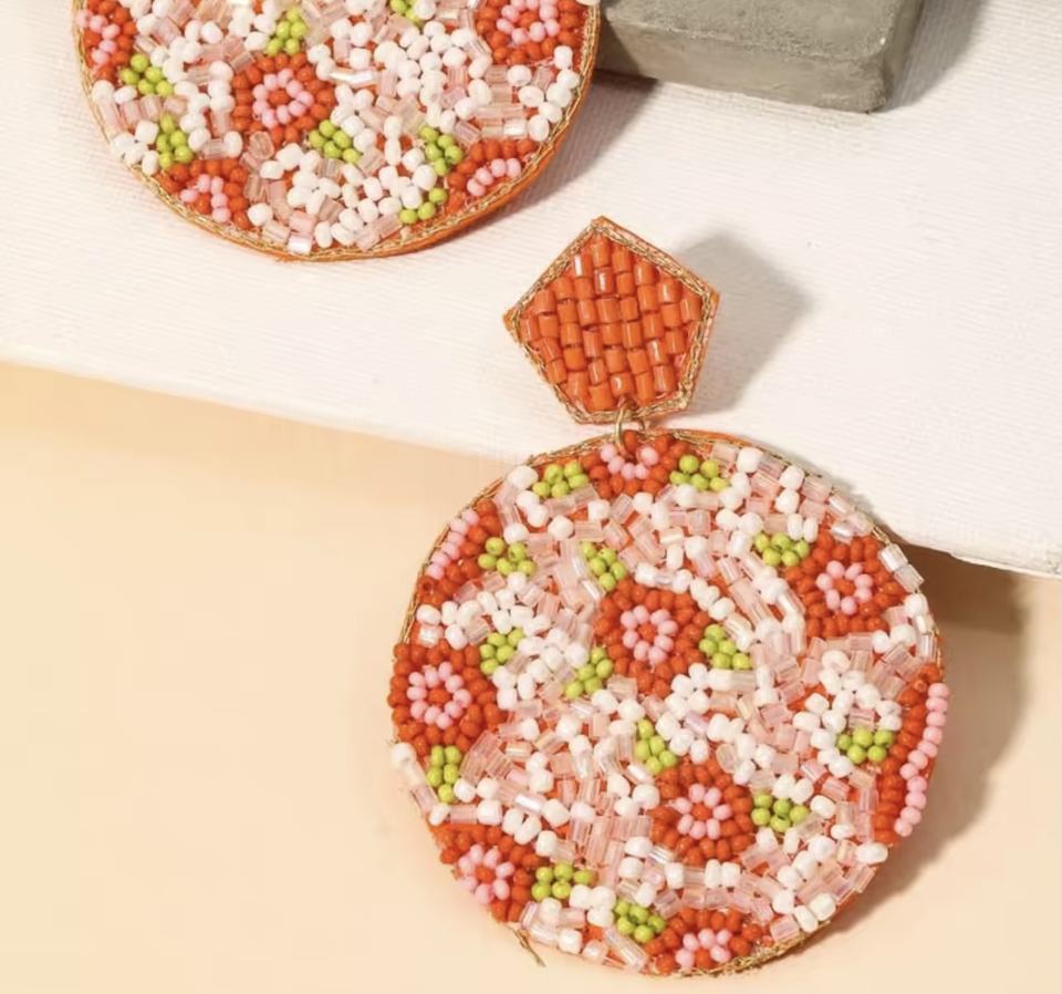 Pendientes de botón clásicos unisex con letras, hechos a mano, de cuentas de cristal multicolor con diseño floral, novedades para profesores, ideales para bodas y fiestas.