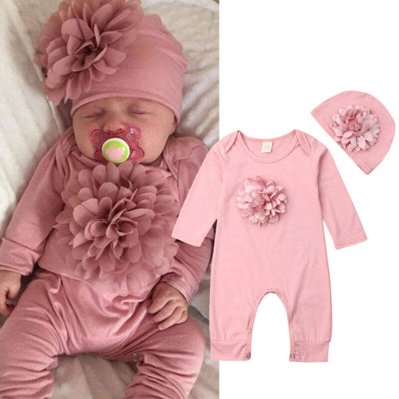 Conjuntos de Ropa para Bebés, Monos de Manga Larga Casuales de Algodón con Estampado Floral, con Gorro