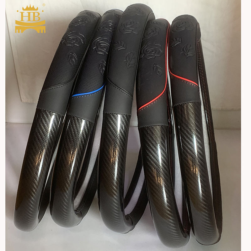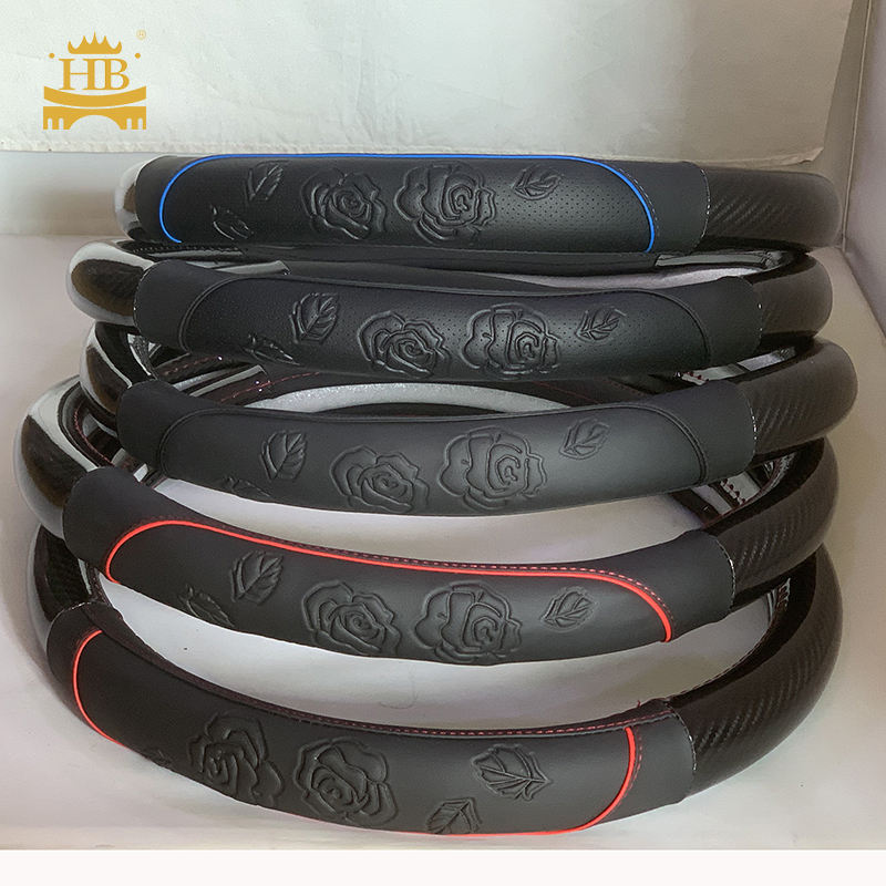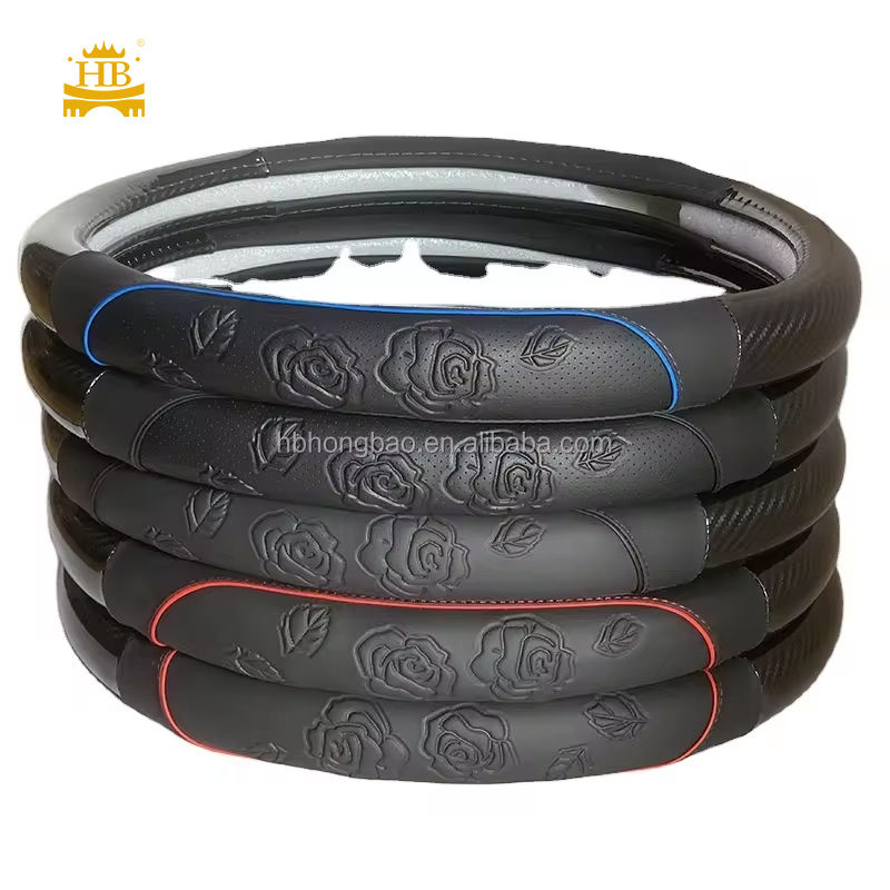 Cubierta de patrones de flores Volante con accesorios de cuero de carbono Cubiertas de volante para automóvil