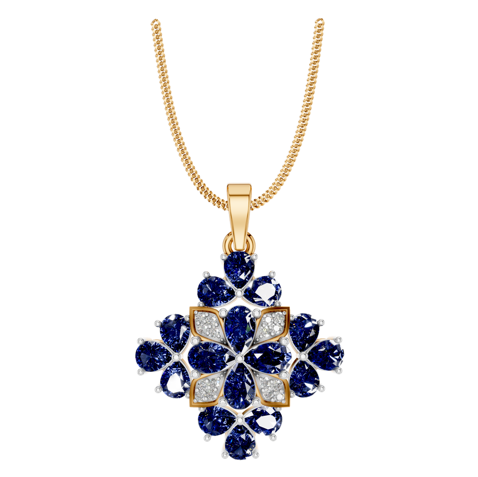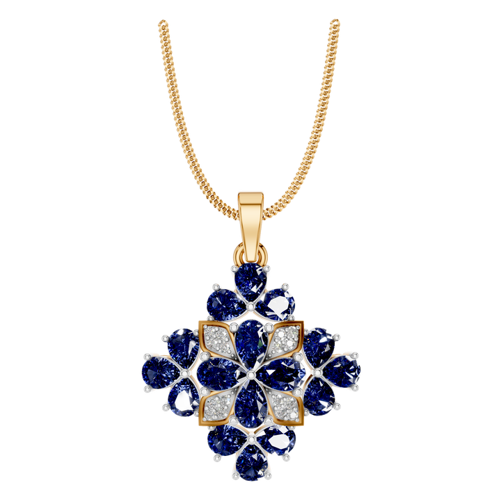 Estilo:Colgante Floral con Pétalos de Zafiro Azul y Diamante Natural