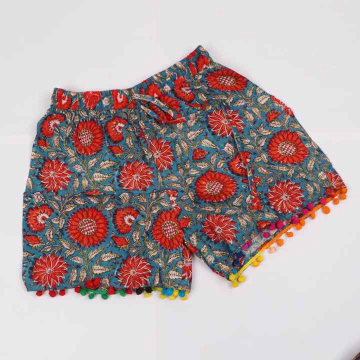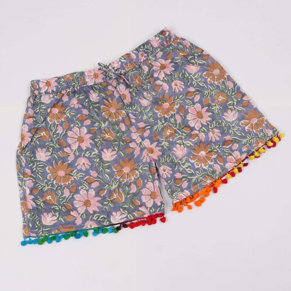 Pantalones cortos con estampado de flores para mujer, Shorts estampados a mano de algodón puro hechos a mano, ropa de noche de verano