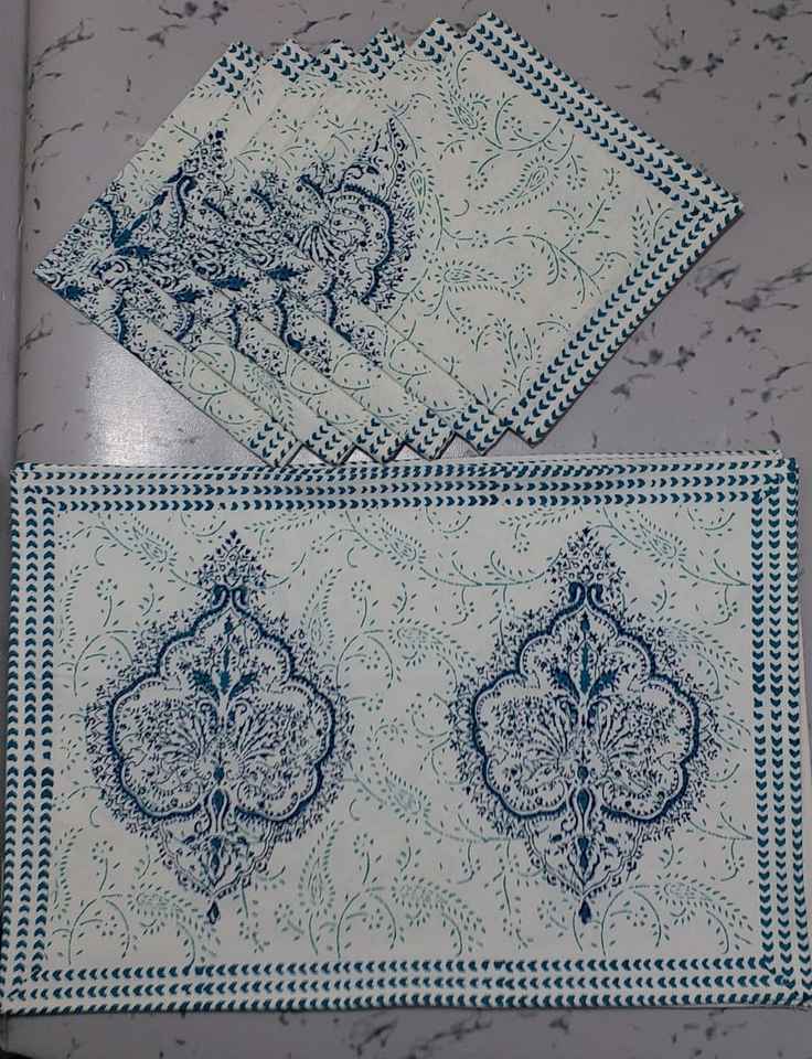 Juego de servilletas impresas en bloque hechas a mano con estampado de flores con alfombrilla, cubierta de mesa de comedor, servilletas para ropa