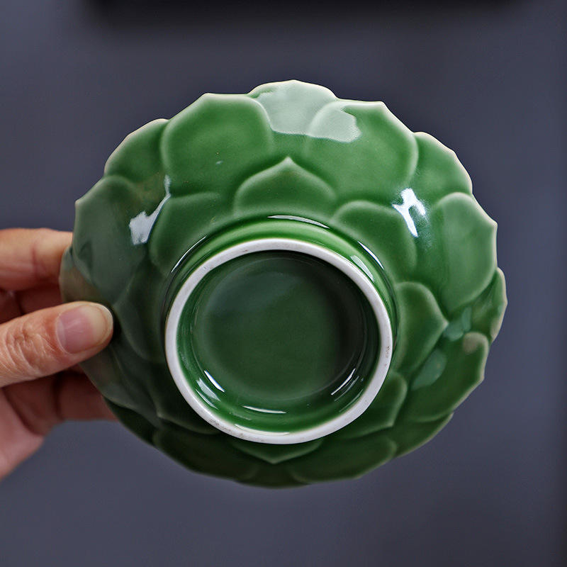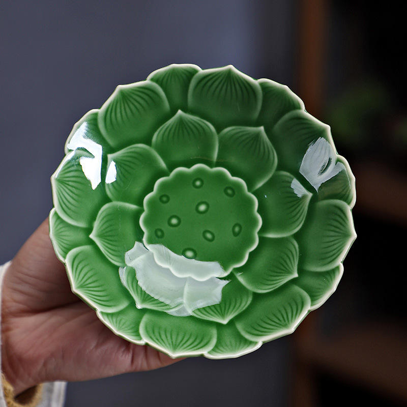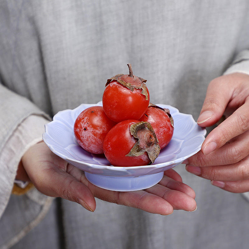 Plato de cerámica con forma de flor y base para servir frutas, postres y té.