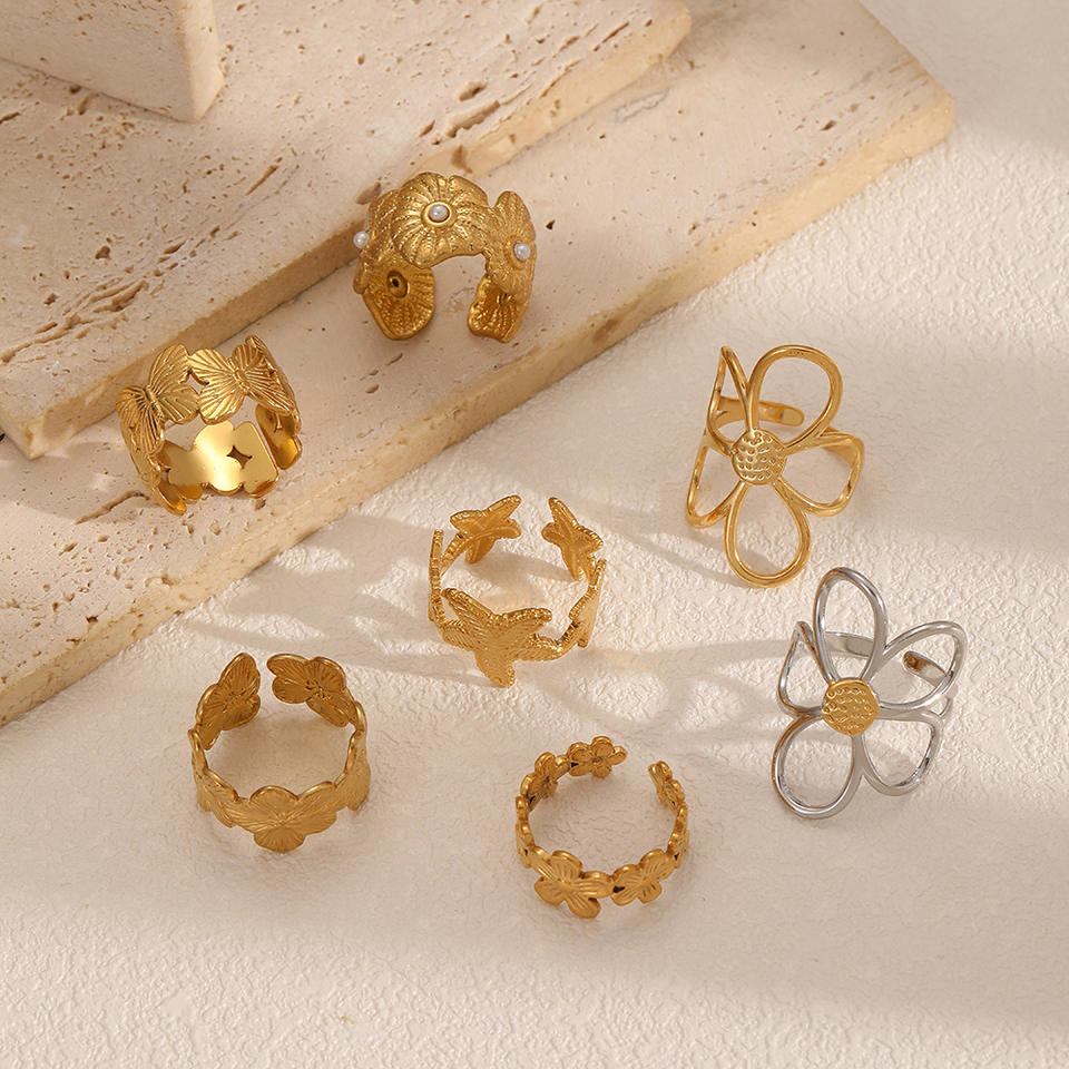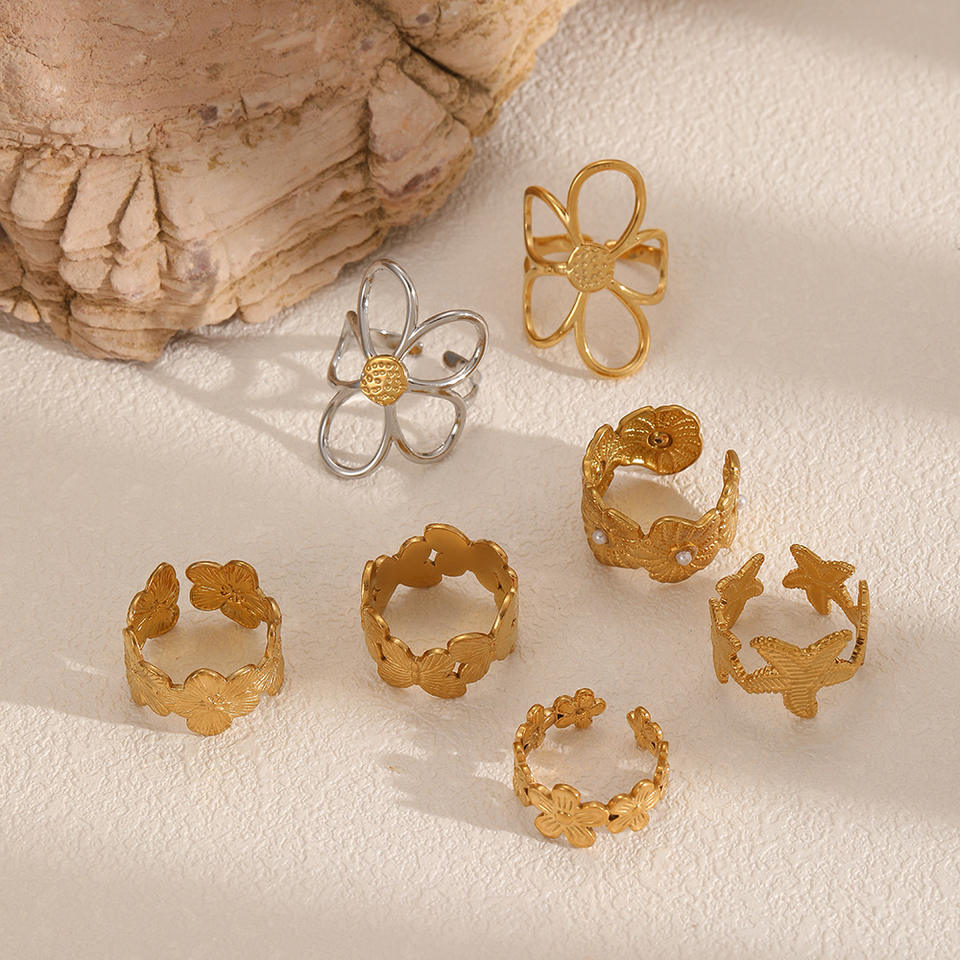 Anillo de acero de titanio con forma de flor para mujer, diseño hueco, regalo, joyería, patrón geométrico TR4485