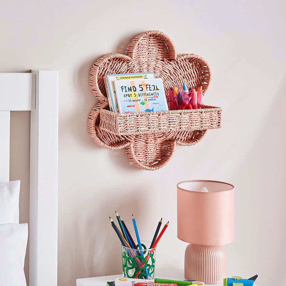 Estante de Pared de Ratán en Forma de Flor, Estante Decorativo de Mimbre Rosa Hecho a Mano para Cuarto de Niños
