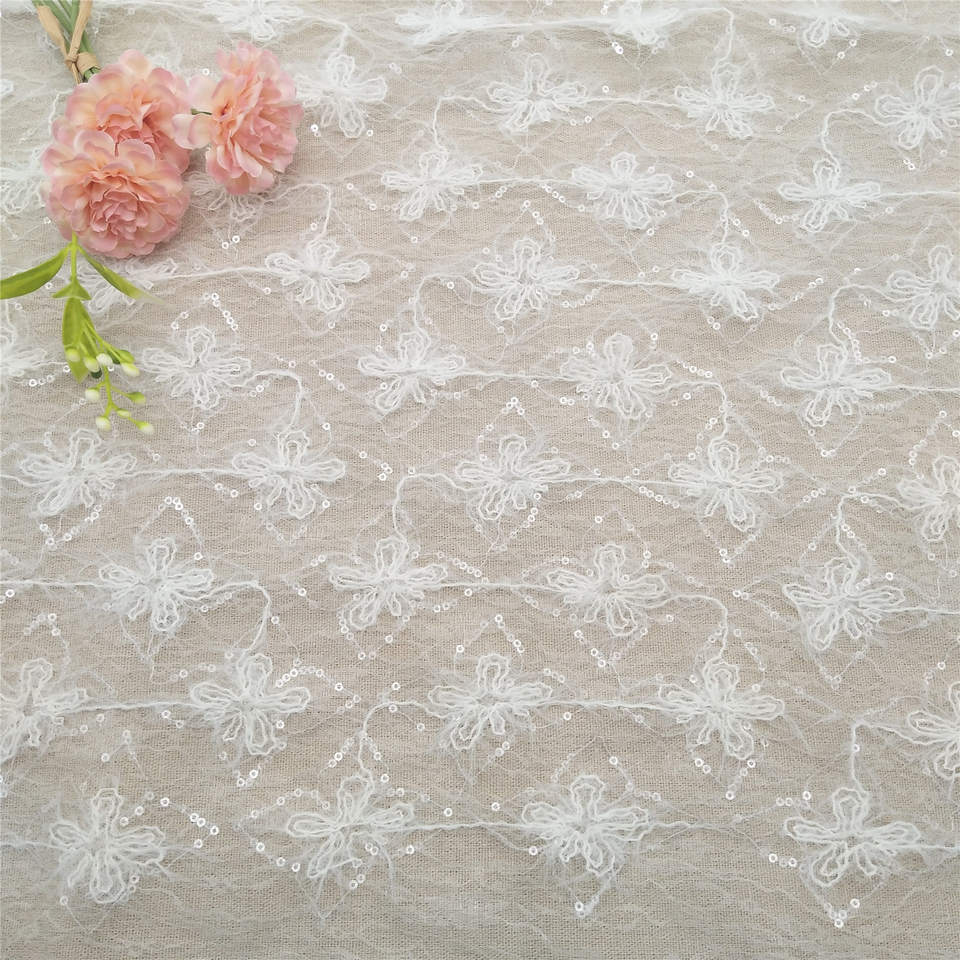 Tela de Encaje Bordado de Malla con Diseño Floral, Soluble en Agua, para Decoración de Ropa, Vestidos y Accesorios de Vestir