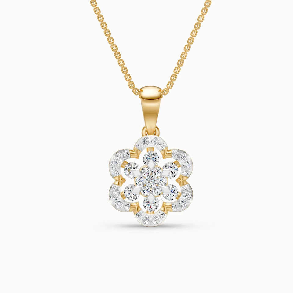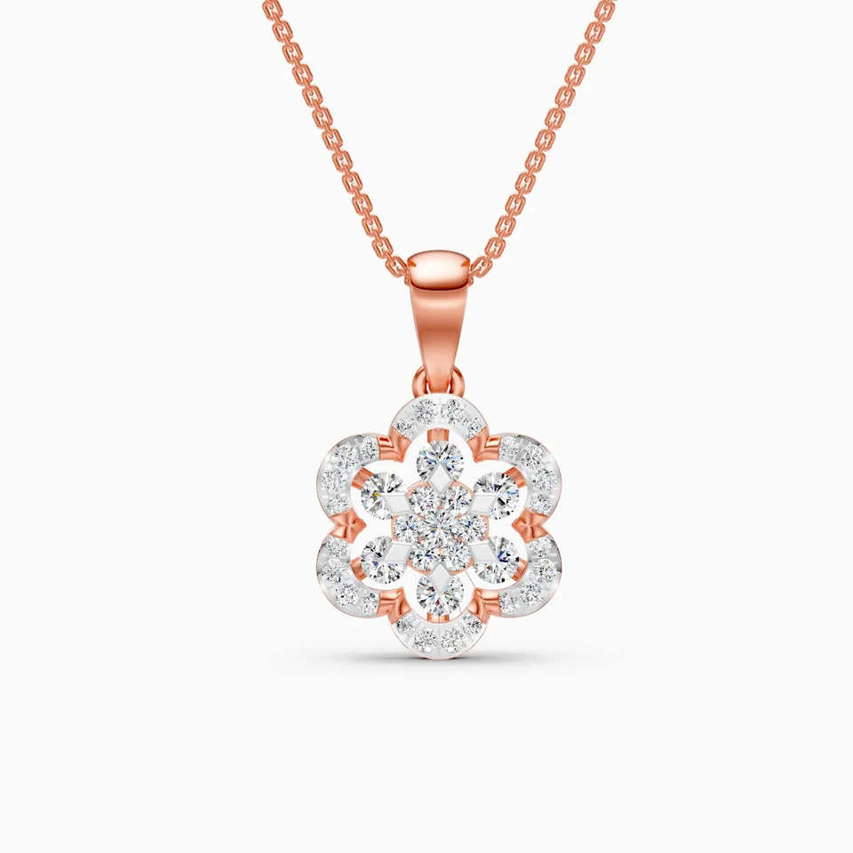 Colgante de diamante cultivado en laboratorio con diseño floral de 0.68 quilates en oro amarillo, blanco y rosa de 9 quilates