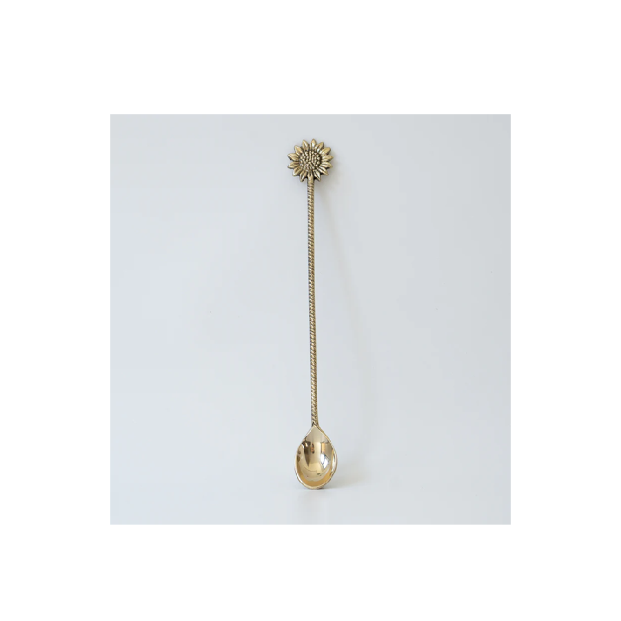 Cuchara de barra de flores Diseño Terminado Mango hecho a mano Cuchara de latón Accesorios de cocina Cuchara de barra corta con pulido