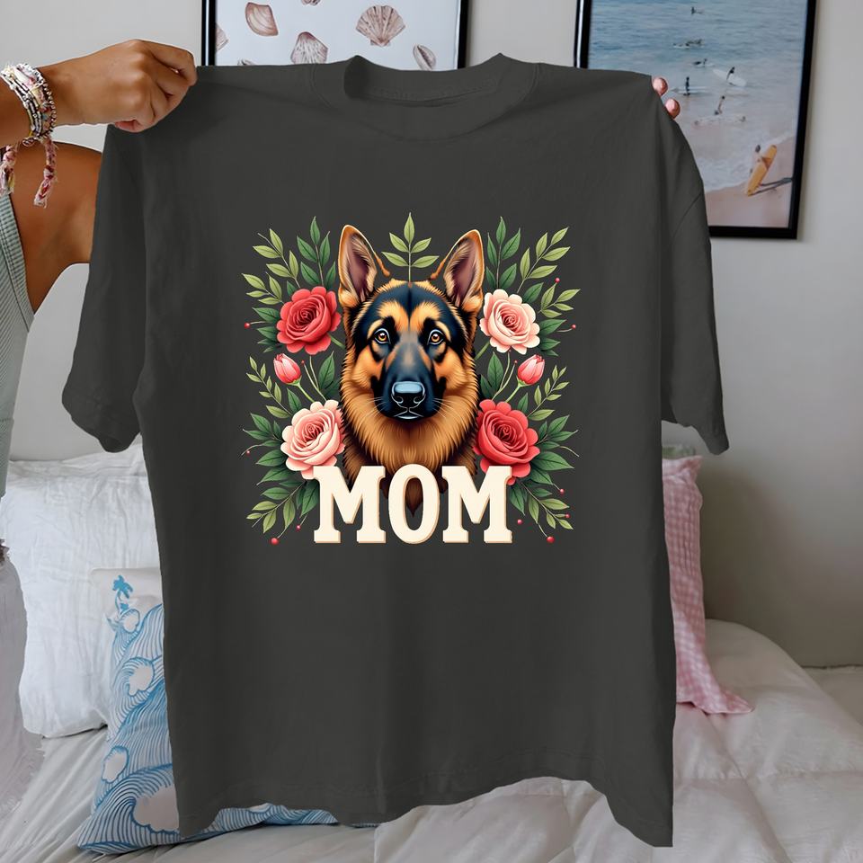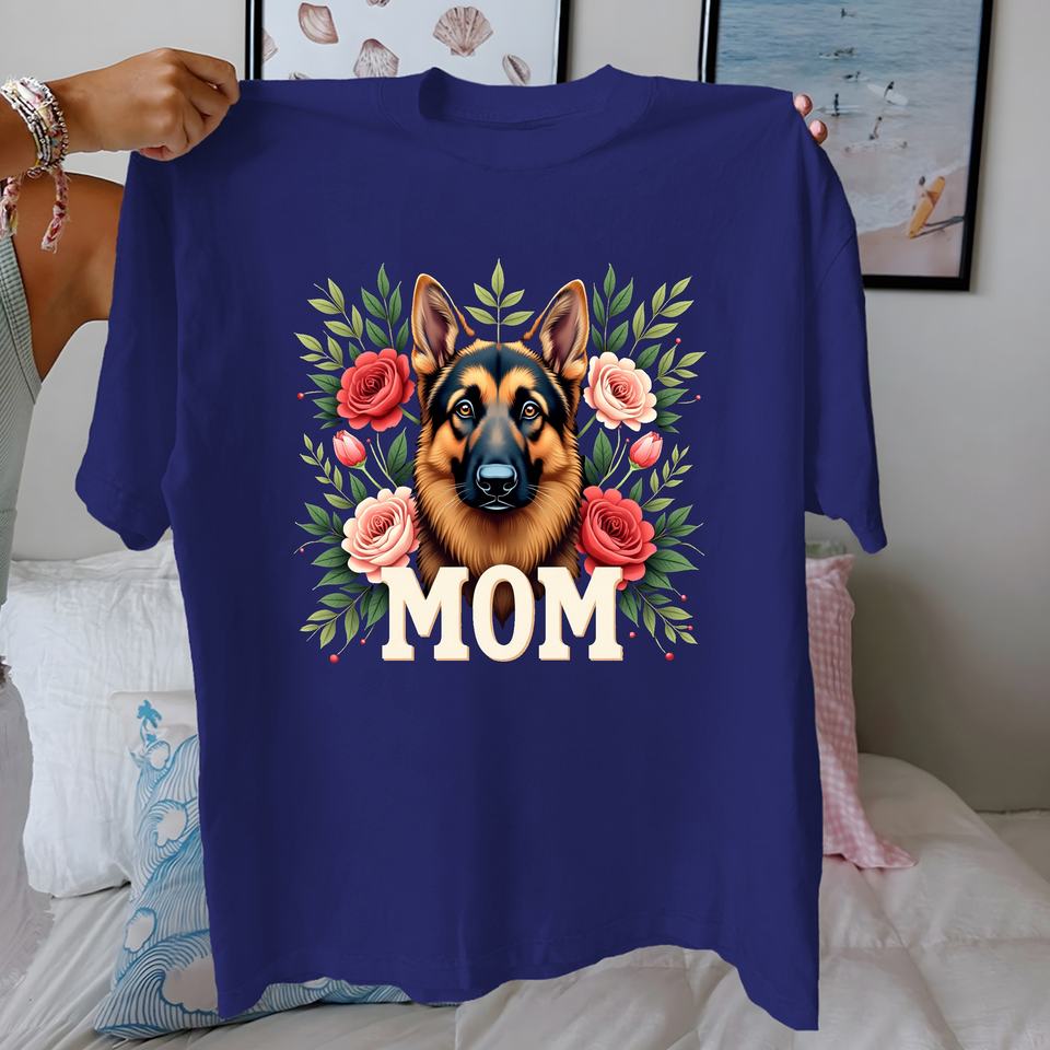 Flores Pastor Alemán con diseño floral Camiseta de mujer de algodón puro ajuste cómodo