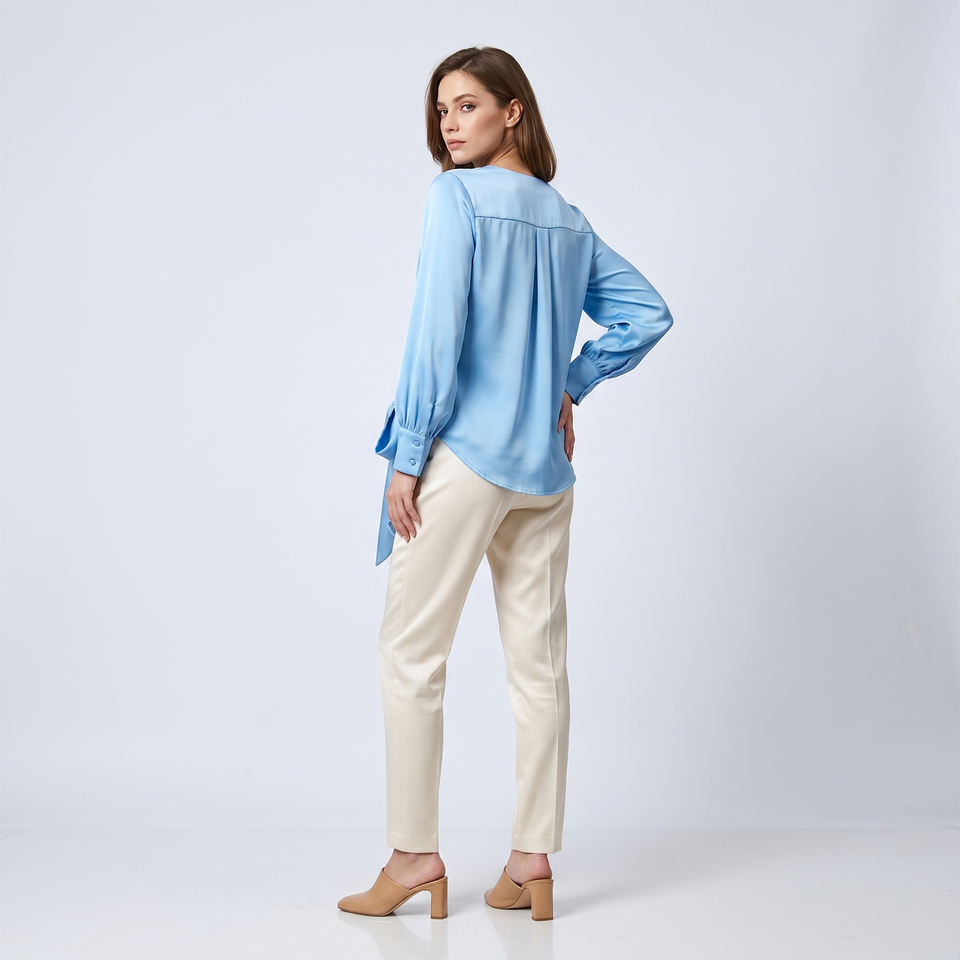 Blusa de satén fluida, asimétrica, con botones al frente
