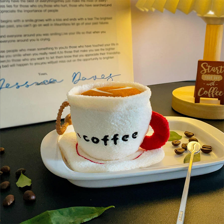 Fluffy Coffee Cup Keychain Cartoon Cute Stuffed Plush Doll Bag Pendant Plushie Toys Coffee Peluches Key Chains Claw Machine Doll
