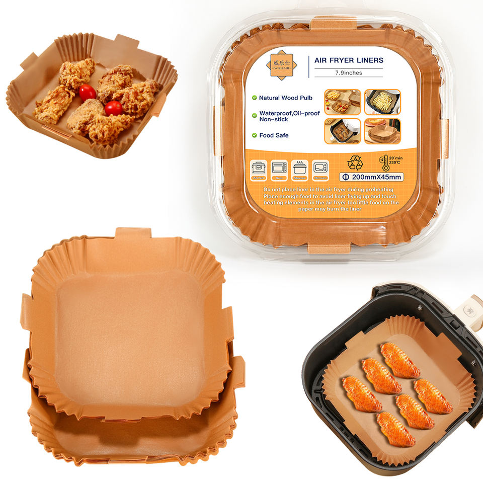 100 Uds 8 pulgadas de silicona para freidora de aire revestimientos de papel fluorescente libre plegable Ninja antiadherente desechable reutilizable para pan