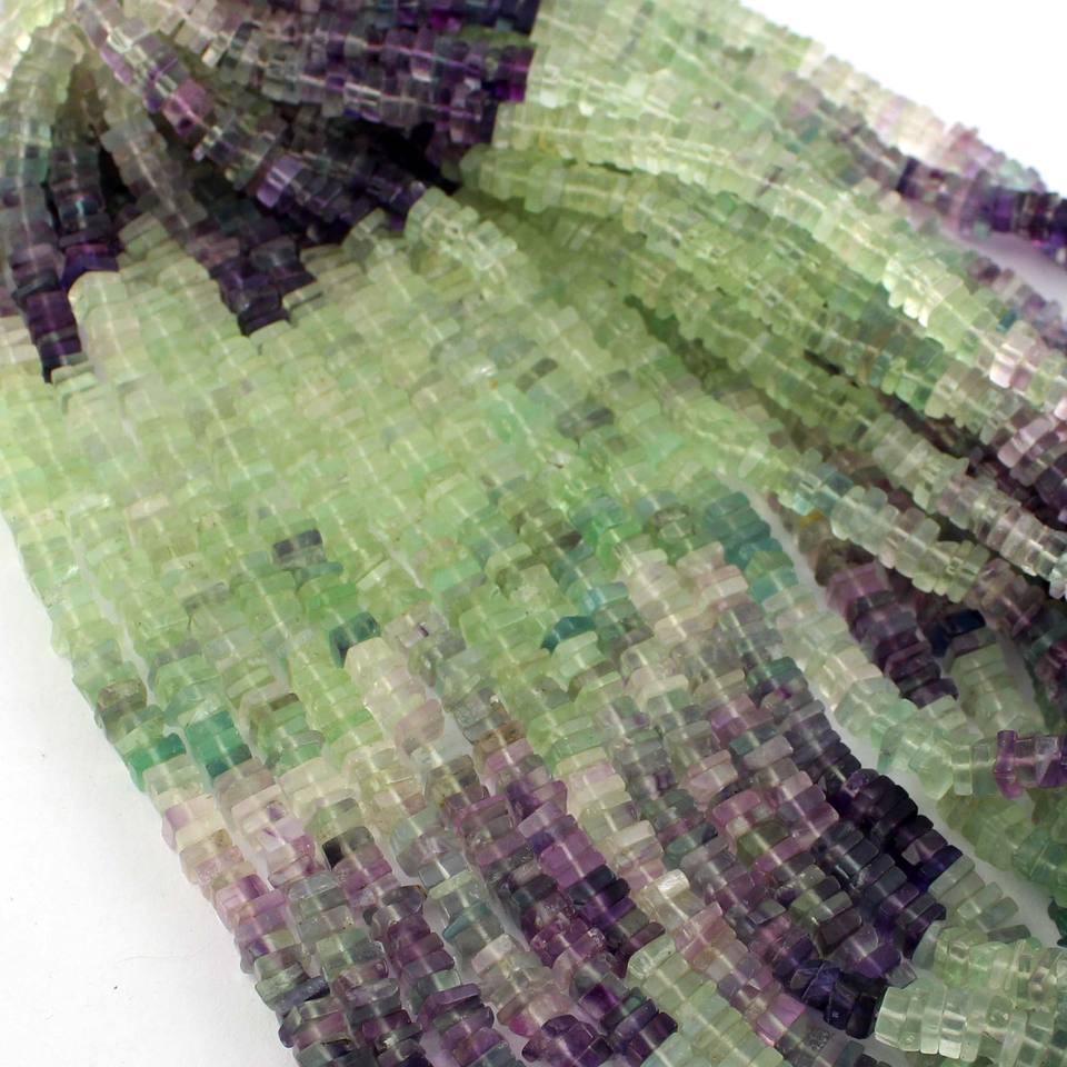 Cuentas sueltas de fluorita Heishe, Forma cuadrada suave en tamaños púrpura y verde de 3mm y 4mm para joyería