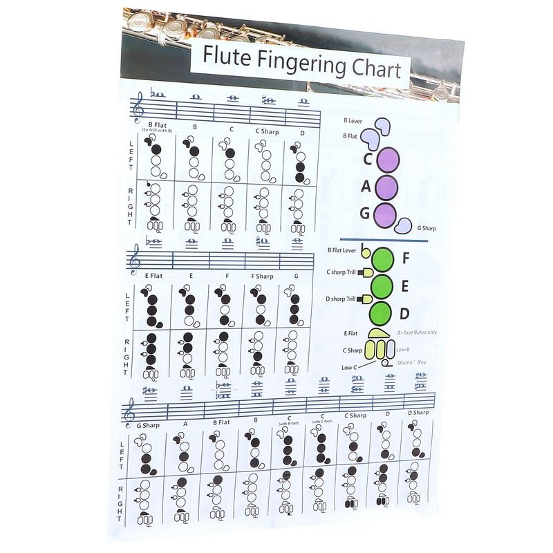 Tabla de acordes para flauta, tabla de acordes para principiantes, accesorios de enseñanza para estudiantes, accesorios para instrumentos L (56x40cm)