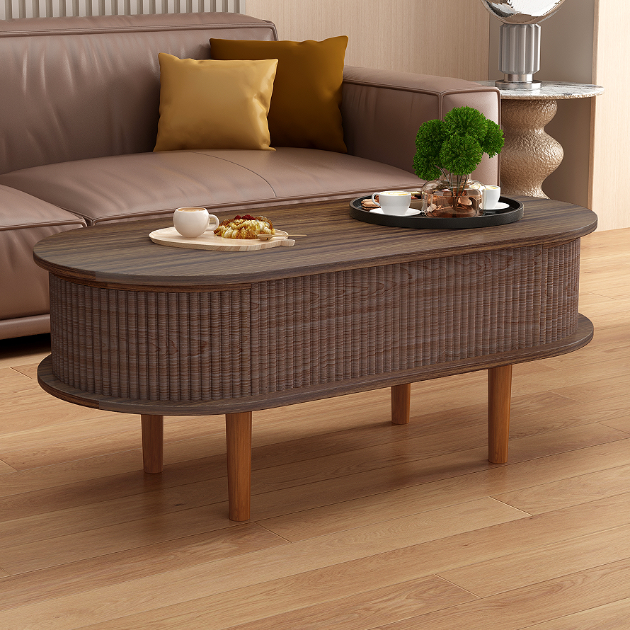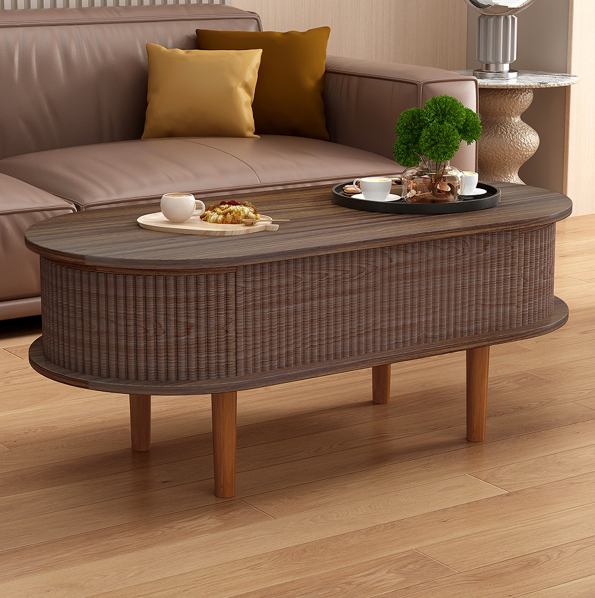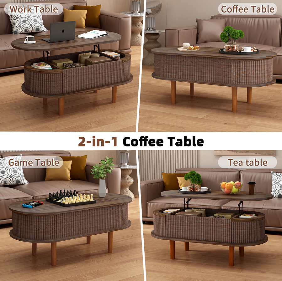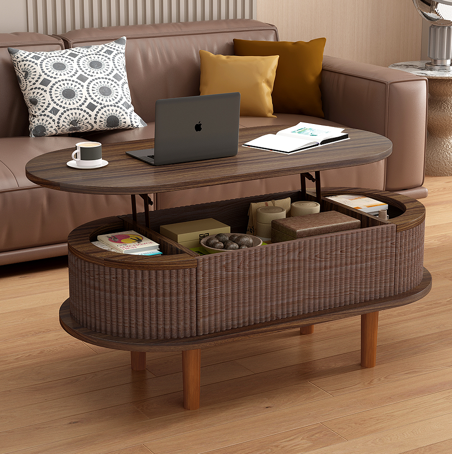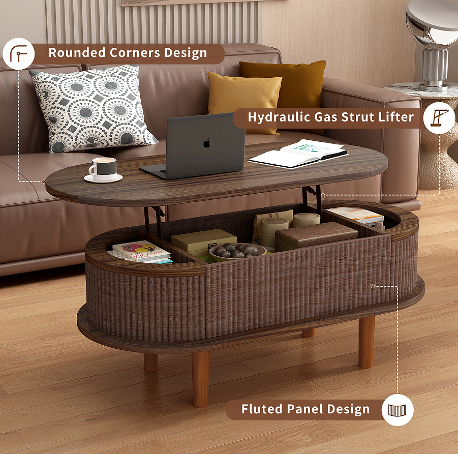 Mesa de Centro con Tapa Elevable y Compartimento Oculto, Mesa de Centro de Madera Moderna con Tapa Elevable Ovalada, Muebles Ecológicos para Sala de Estar