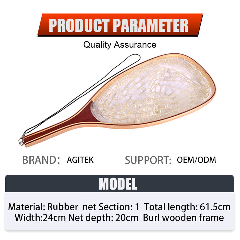 Red de Pesca con Mosca, Malla con Mango de Madera, Red de Aterrizaje de Goma, Soporte para Captura y Liberación, Cesta, Herramientas de Pesca de Trucha, Red de Aterrizaje
