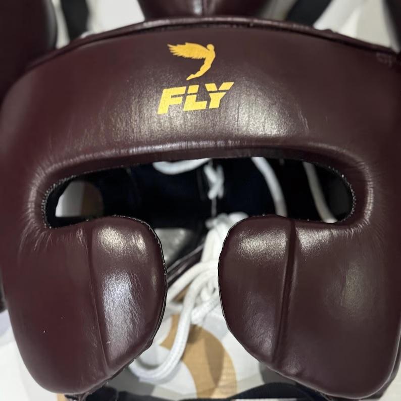 Set de Boxeo Fly SuperLace, Guantes de Boxeo Personalizados de Cuero Vacuno Auténtico, Protector de Cabeza Cheek Bar, Protector Inguinal