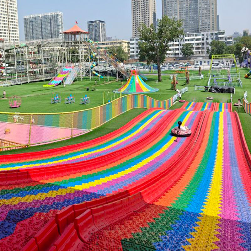 Flyfun — tobogán arcoíris personalizado para parques de entretenimiento al aire libre, tobogán tipo donut con colchoneta colorida para niños y adultos