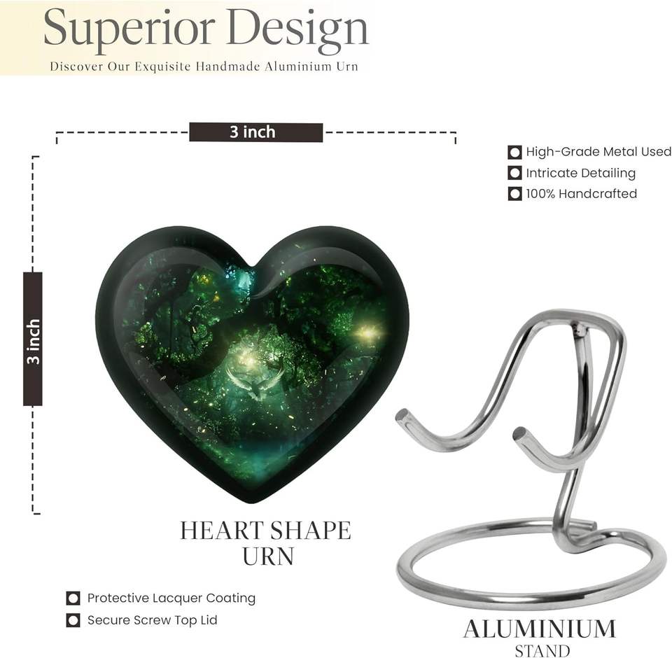 Paloma voladora en el bosque, corazón de urnas, urnas de 3 pulgadas, Juego de 2, urnas de recuerdo para cenizas