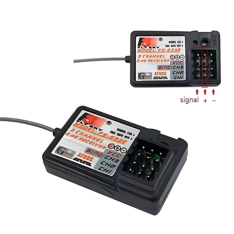 Receptor Flysky FS-GR3E de 3 Canales, 2.4055-2.475GHz, Ancho de Banda de 500KHz, 140 Bandas, Failsafe, Actualización para FS/GT2/3/3B, para Autos y Barcos RC FXB