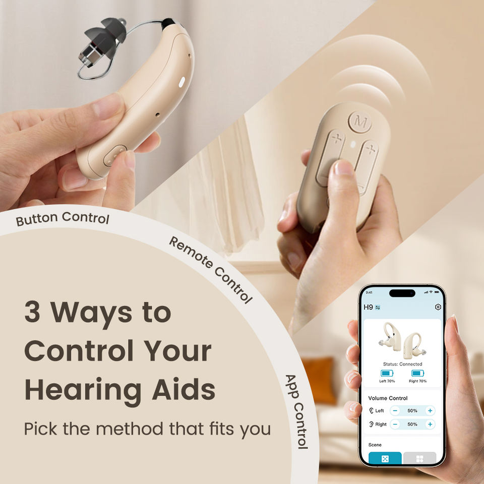 Flysound audífono mini BTE recargable con Bluetooth, ajuste por app, OTC, audífono médico de alta calidad para personas mayores con pérdida auditiva