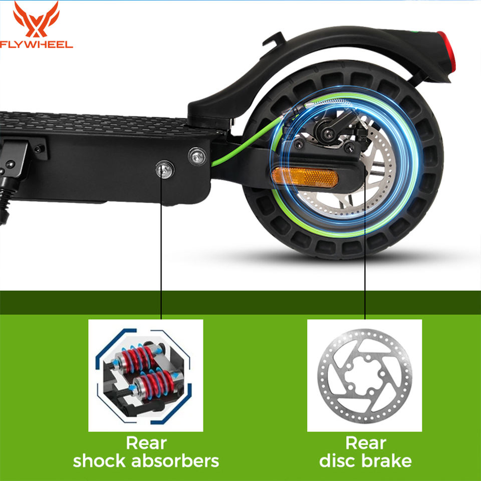 Patinete Eléctrico Plegable Flywheel E5MAX de 10 Pulgadas con Control por App, Batería de Litio y Canasta de Transporte para Adultos - Autonomía de 30-40 km