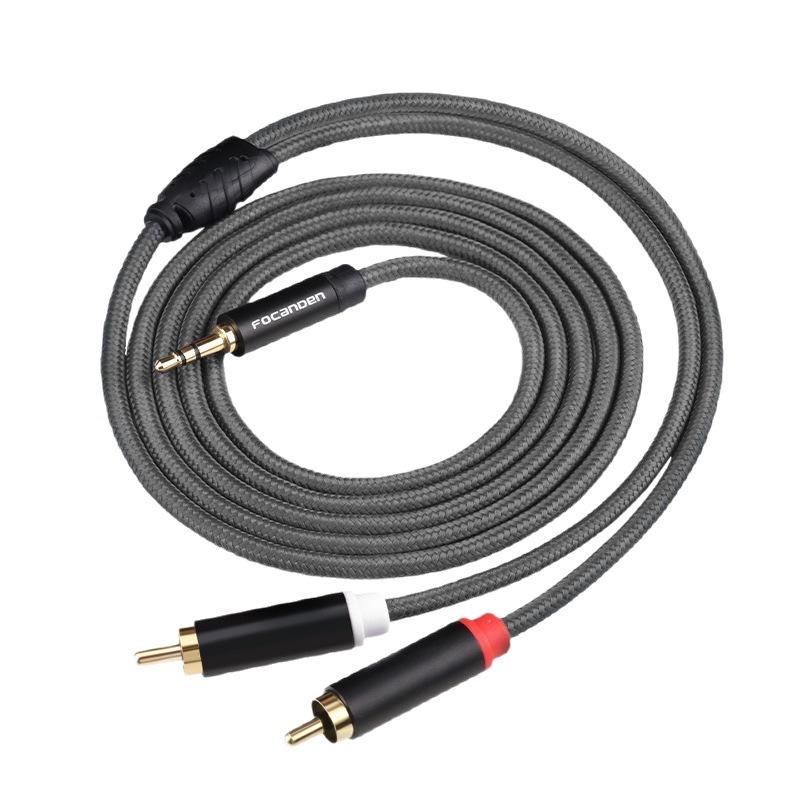 Cable Divisor de Audio Focanben de 3.5 mm a RCA, Doble Conector, Gris, con Blindaje Trenzado, para Audio y Video