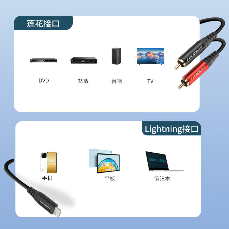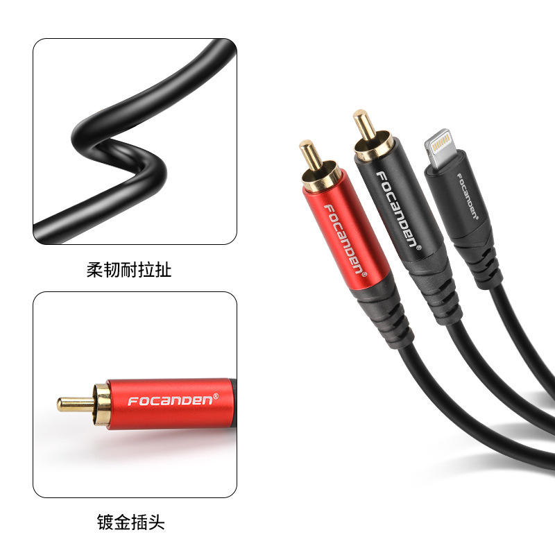 Cable de audio Focanden Lightning Dual RCA con blindaje para teléfonos inteligentes, tabletas, portátiles, amplificadores, televisores, sistemas de audio, DVD