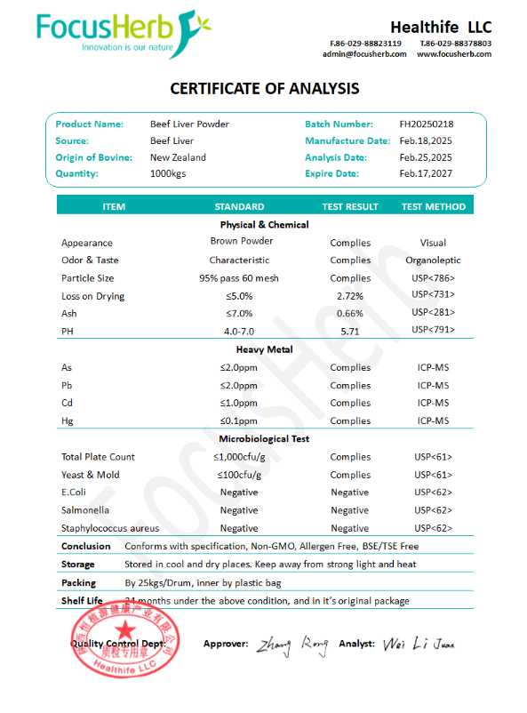 Ingrediente principal:Polvo de Hígado de Res Sin Grasa