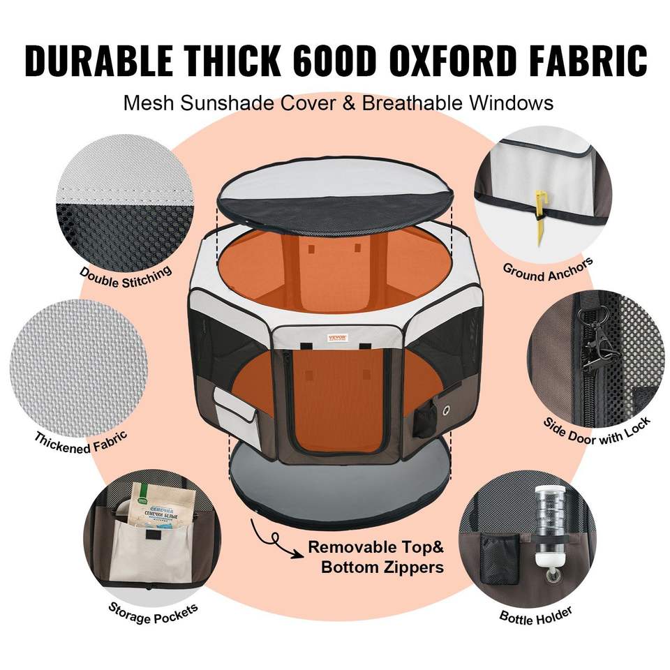 Corral Plegable Premium Impermeable de 46 Pulgadas para Perros y Gatos, Jaula Portátil para Cachorros, Tela Oxford 600D