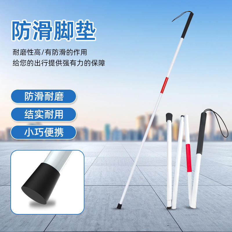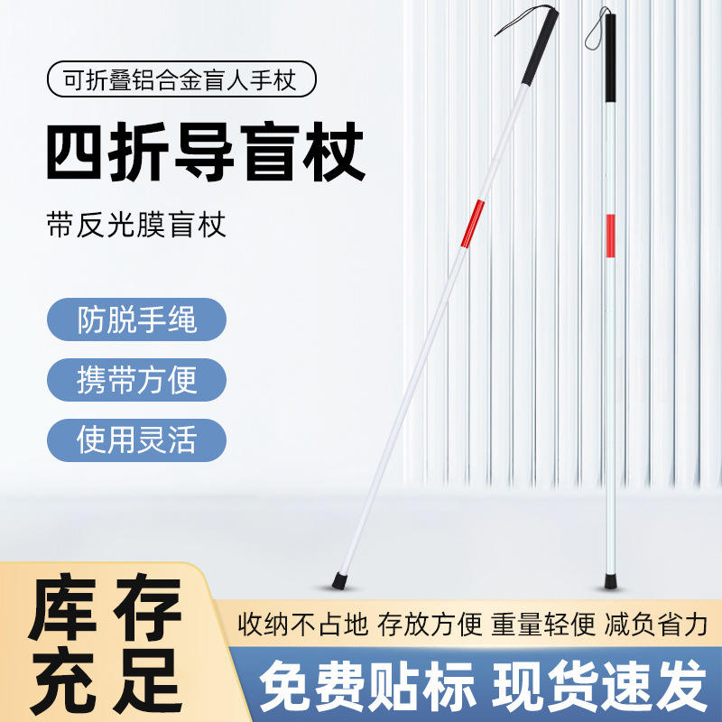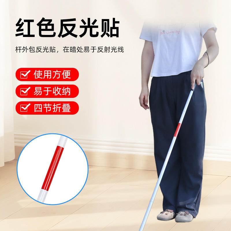 Bastón plegable de aleación de aluminio para personas con discapacidad visual, diseño de cuatro pliegues, antideslizante, ligero y portátil.