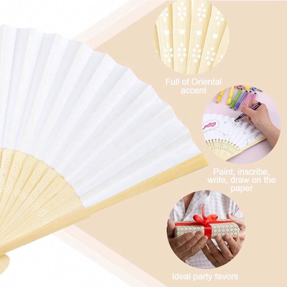 Abanicos Plegables de Bambú, Abanico de Mano Plegable para Decoración DIY, Bodas, Baile, Fiestas de Verano