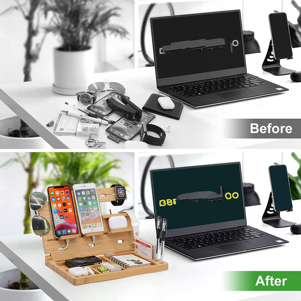 Organizador de mesita de noche de bambú plegable Estación de acoplamiento práctica Estación de carga de muelle ecológico