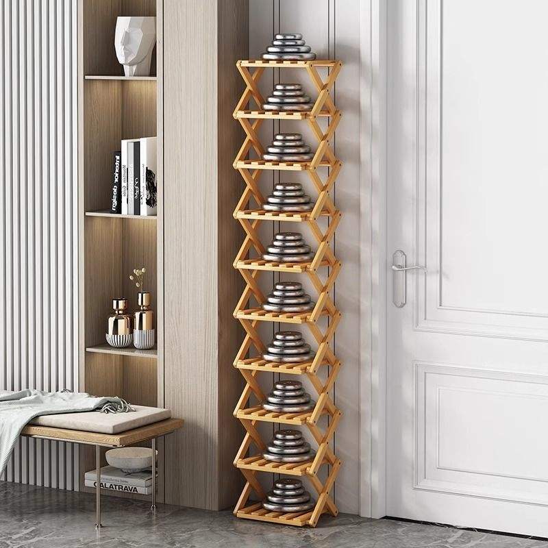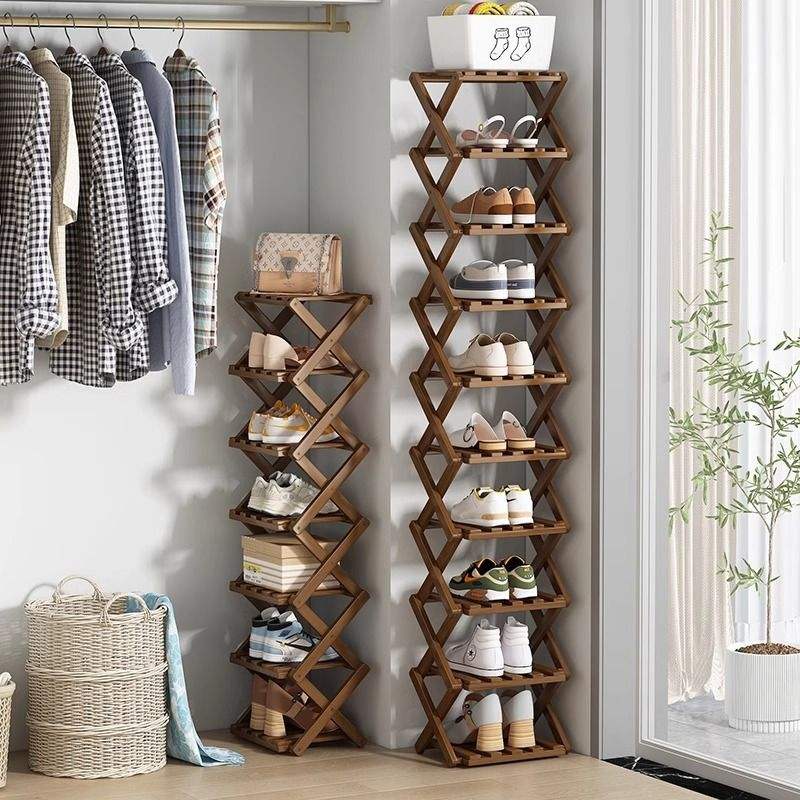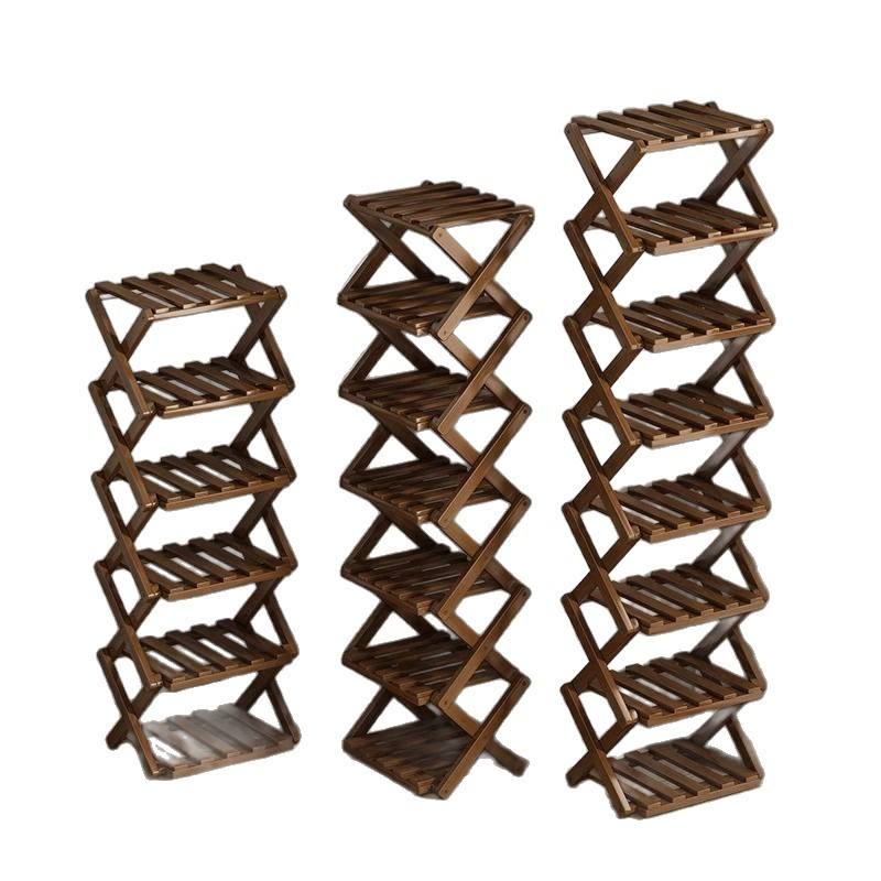 Zapatero plegable de bambú con 5 niveles para almacenamiento en el hogar y uso en la sala de estar