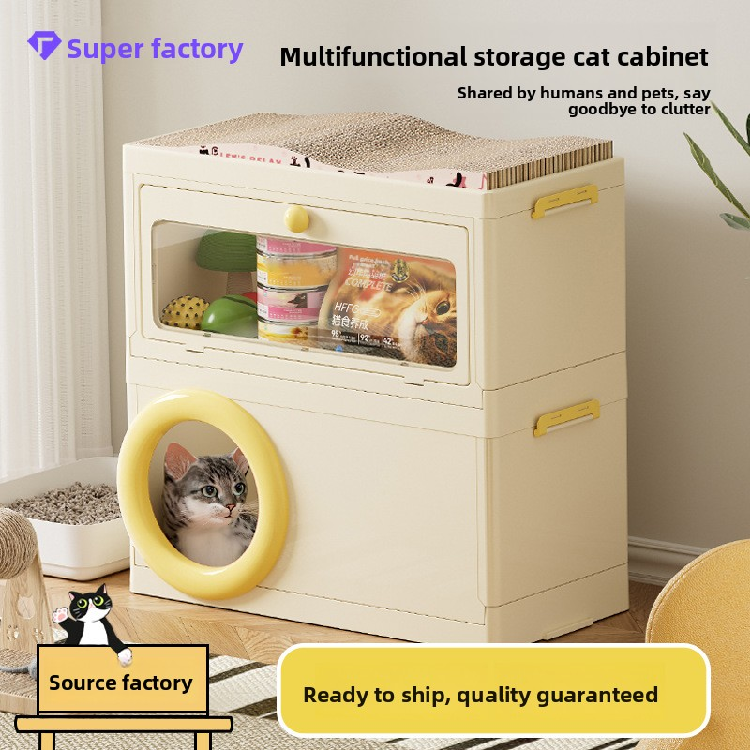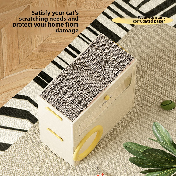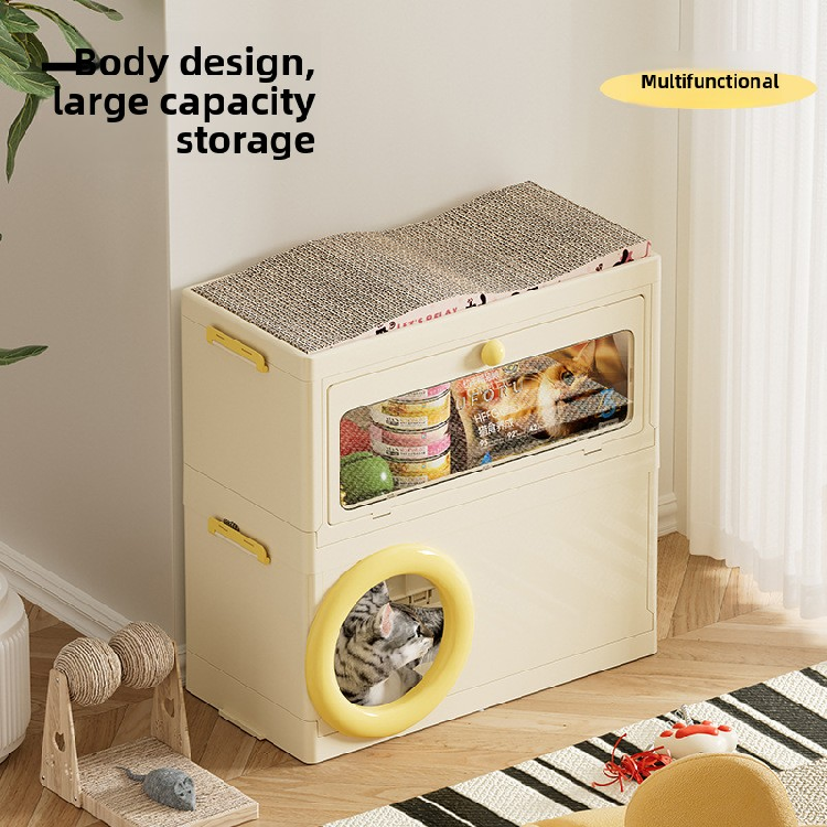 Casa Plegable para Gatos con Rascador Integrado, Cama para Gatos de Múltiples Niveles con Almacenamiento, Refugio Impermeable para Mascotas Pequeñas