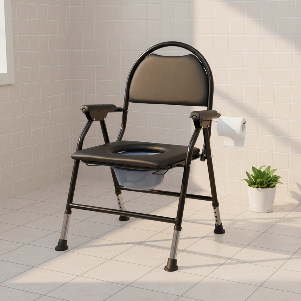 Silla de Inodoro Plegable con Respaldo y Brazos, 5 Ajustes de Altura, Asiento Elevado para Personas Mayores, Discapacitadas y Mujeres Embarazadas