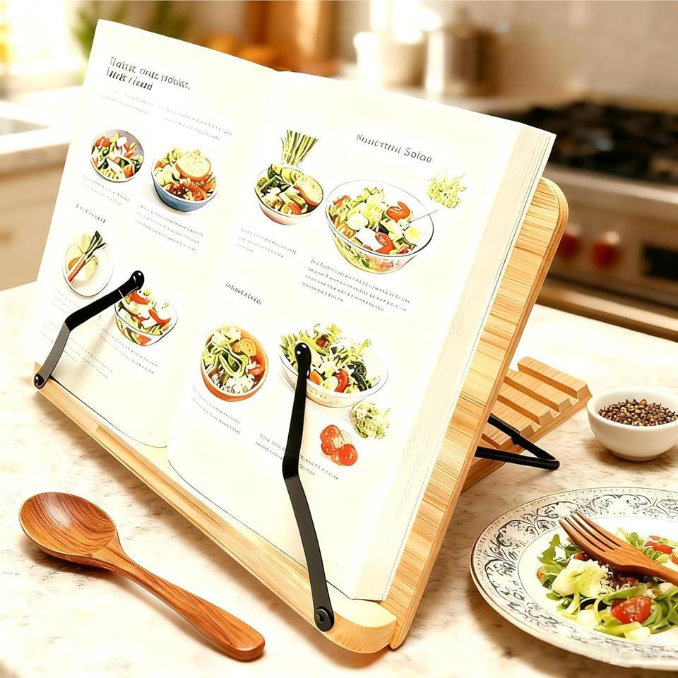 Soporte Plegable para Libros de Cocina, Organizador de Documentos de Escritorio para Cocina y Oficina, Soporte de Bambú Ajustable para Libros