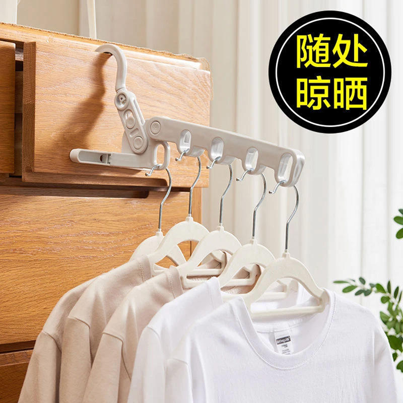 Perchero plegable de cinco orificios con gancho, portátil para viajes, dormitorios, hoteles, uso en interiores, organizador de ropa