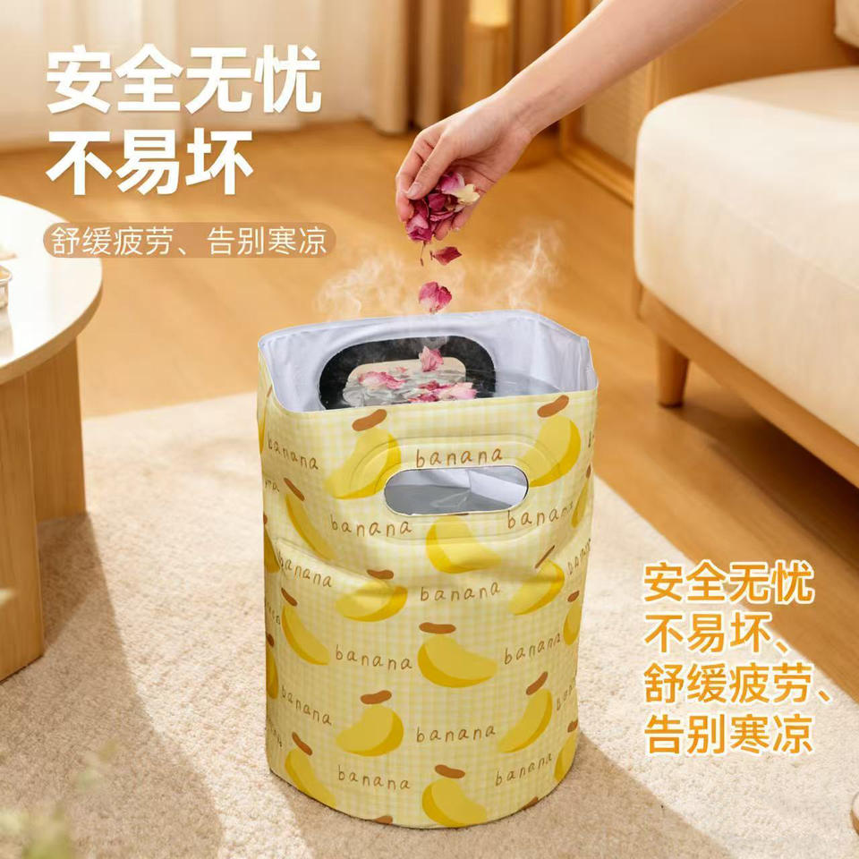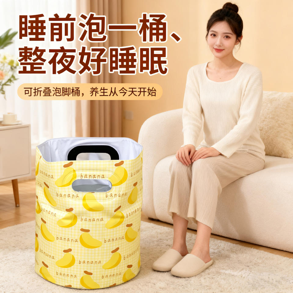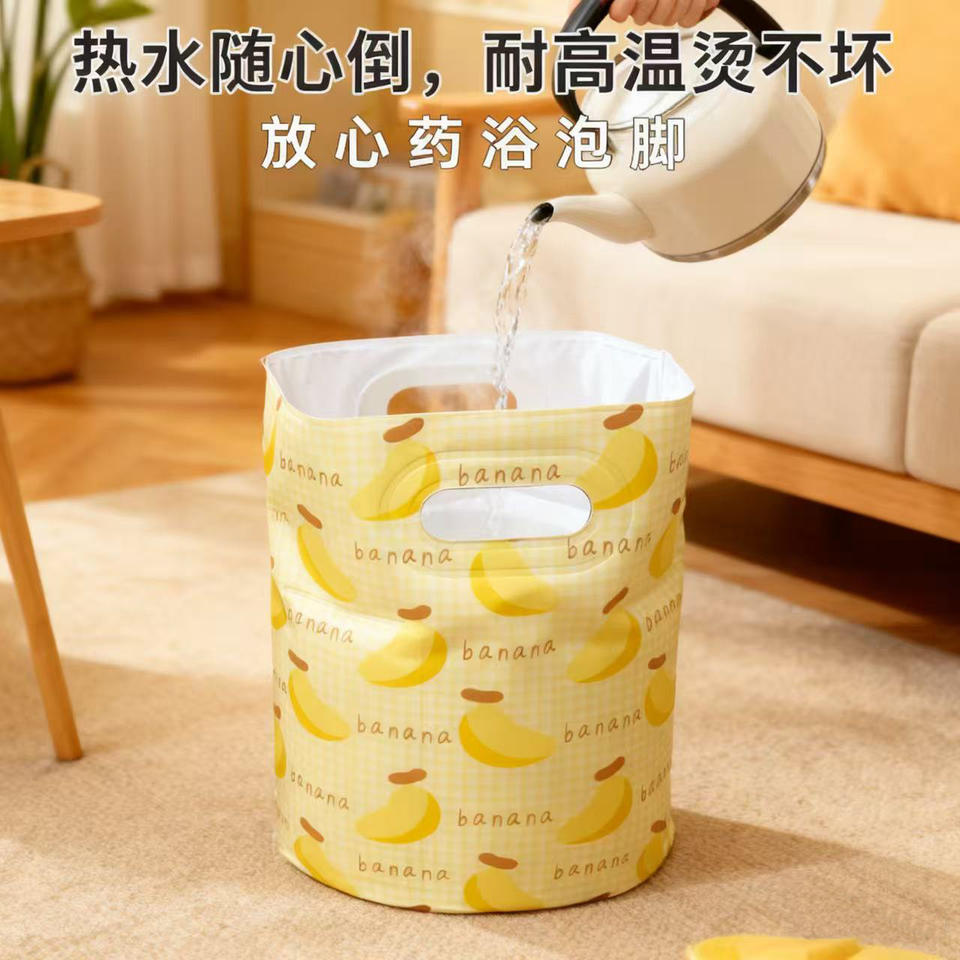 Cubo plegable para baño de pies, portátil, hasta la rodilla, para el hogar y estudiantes, color amarillo plátano, material de PVC ecológico