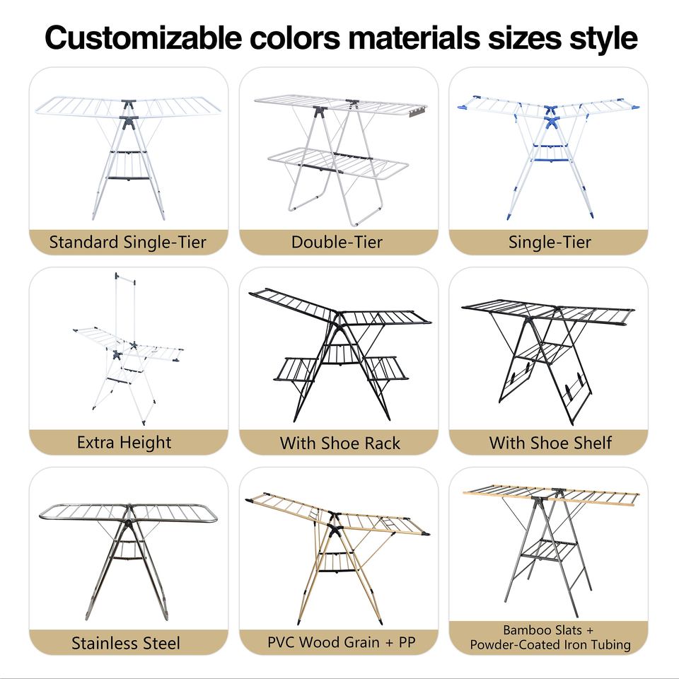 Tendedero Plegable Tipo Ala de Gaviota, Ahorra Espacio, Soporte Metálico para Ropa, Portátil, Multicapa, Ajustable