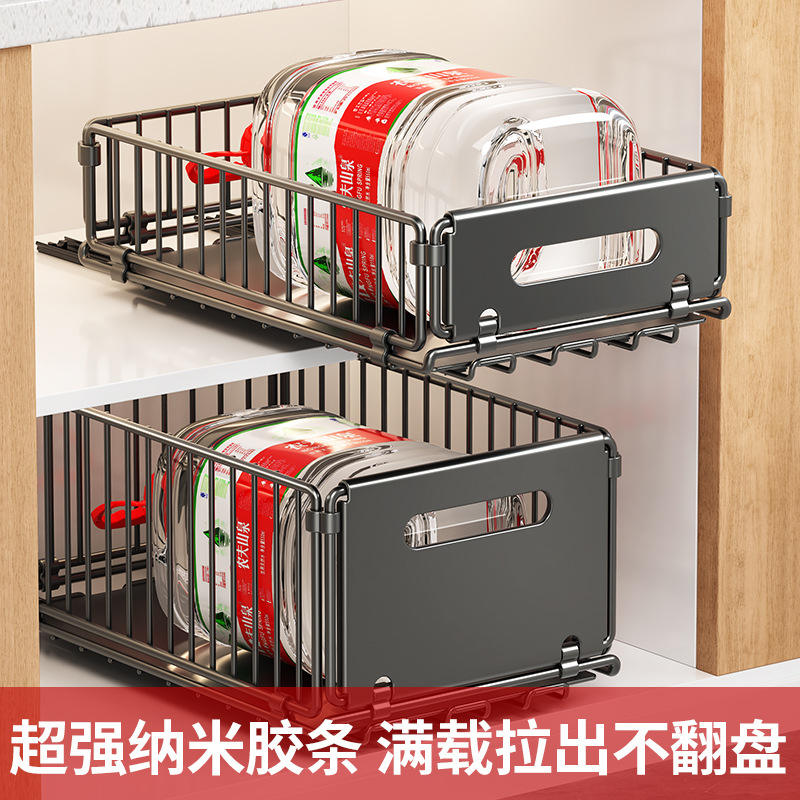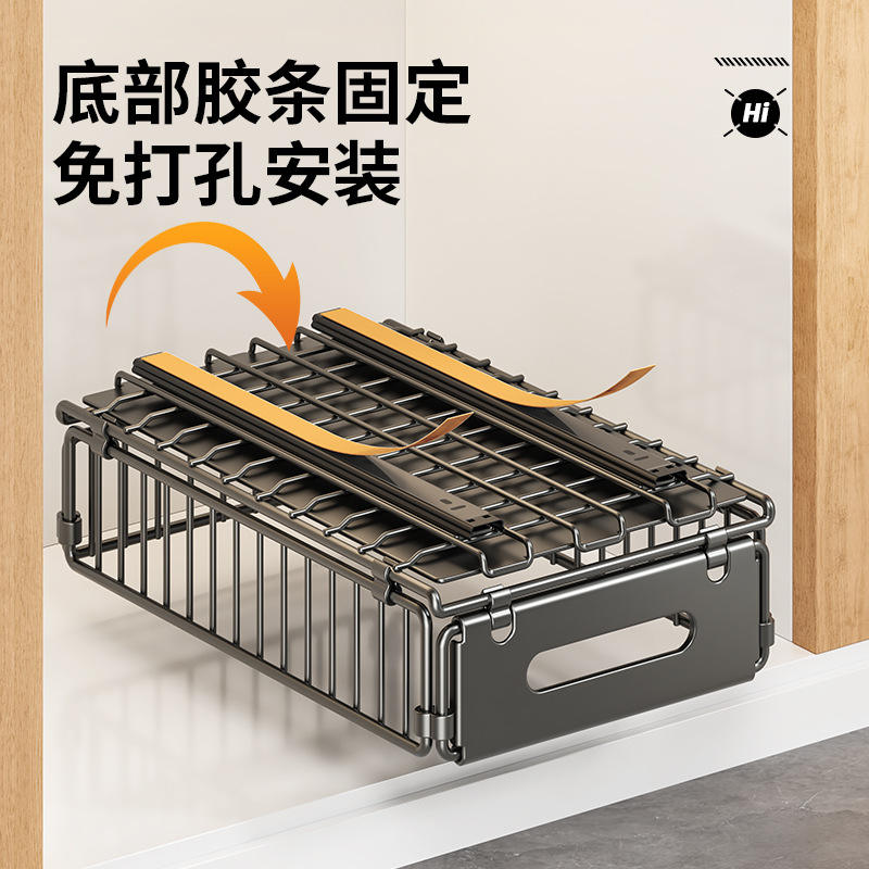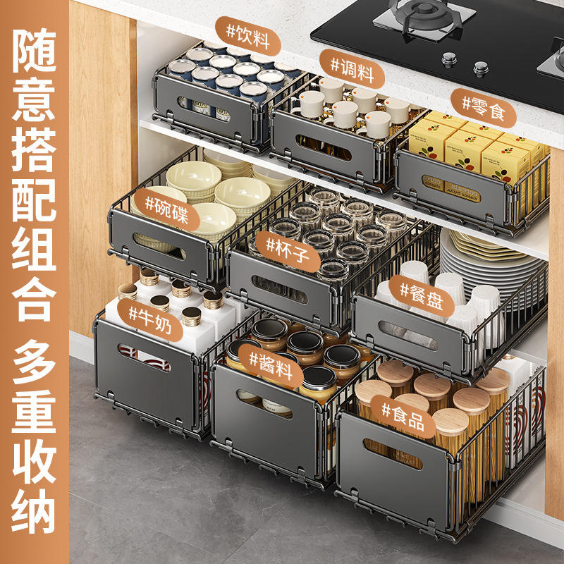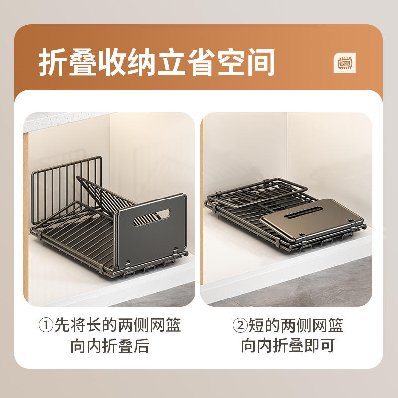 Estante de Almacenamiento Plegable para Cocina, Canasta Extraíble Rectangular de Acero al Carbono para Almacenamiento de Especias